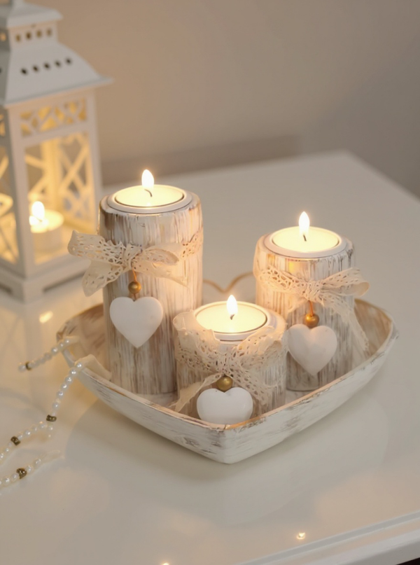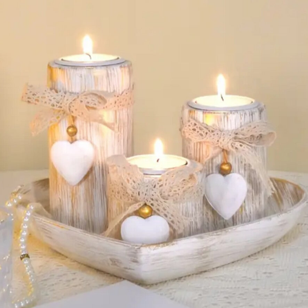 Romantic Heart β Theelichthouder Set op Hartschaal
